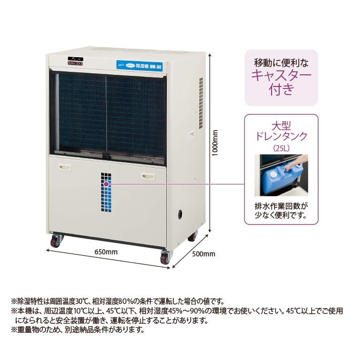 デジカント式に比べ電気代が抑えられる他、梅雨、夏場などの高温多湿な環境ほど高い除湿能力を発揮します。